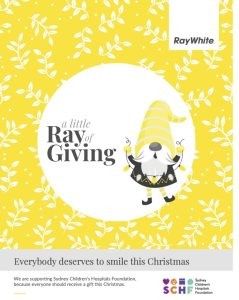 For the 12th year Jeremy, Rebecca and the team at Ray White Wentworth Point are launching “a Little Ray of Giving’’ where you’re invited to drop a unwrapped present into our office at 35 Hill Road, Wentworth Point before 20th December and together we’ll make sure we give sick kids the brightest Christmas possible.